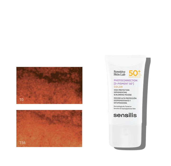 Фотокоррекция [D-Pigment 50+] содержит комбинацию биоферментированного экстракта шалфея мускатного, стабилизированного витамина С и витамина Е, которые подавляют избыточную выработку меланина и уменьшают видимость пигментных пятен на 16% всего за два месяца. Кроме того, муссовая текстура с красителем выравнивает тон кожи, обеспечивая мгновенный и прогрессивный эффект.